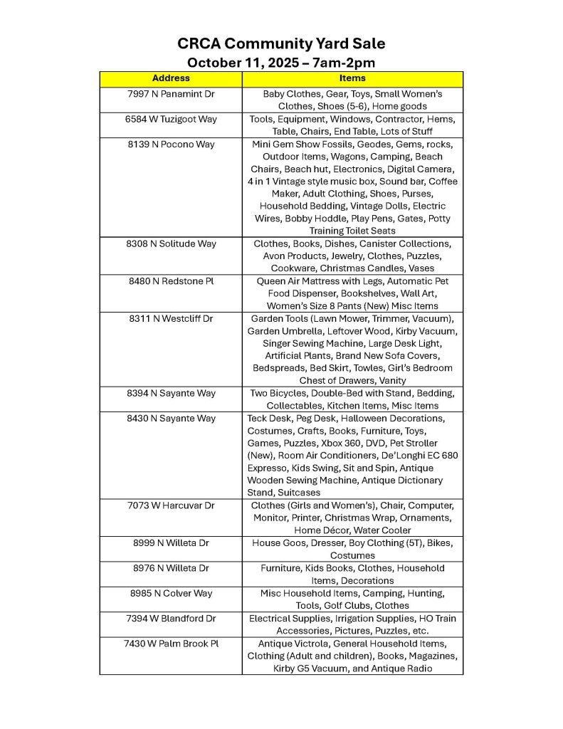 Here are the homes that are participating in the CRCA Halloween Decorating Contest taking place on October 23rd from 6:30pm to 8:30pm.